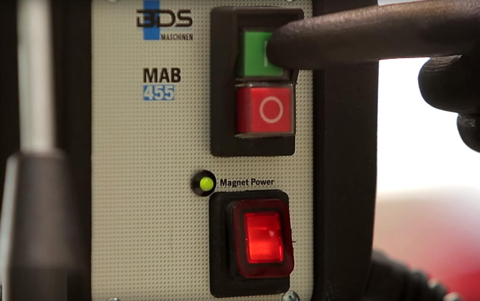 Step 7: Switch ON the magnet of the machine and start the motor to drill.